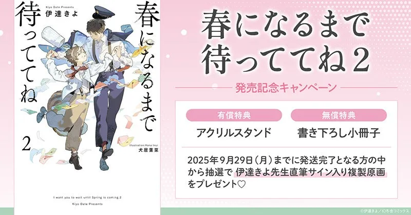 株式会社TORICOが運営するホーリンラブブックスにて、注目のBL作家・伊達きよ先生と人気イラストレーター・犬居葉菜先生の新作『春になるまで待っててね(2)』の発売を記念した特別キャンペーンが開催されます。この素晴らしい機会をお見逃しなく!具体的な内容を以下で詳しくご紹介します。