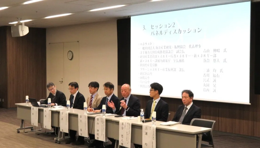 令和7年3月25日、東京都内において、秋田工業高等専門学校(以下、秋田高専)が主催するシンポジウム「未来の風向きを変える洋上風力発電の今とこれから~COMPASS5.0次世代のエネルギーの将来と人材育成を考える~」が開催されました。このシンポジウムは、国立高等専門学校機構、高津高専、函館高専との共催により実施され、再生可能エネルギー分野、特に風力発電について積極的に議論されました。
