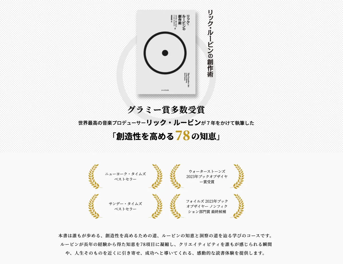本書『リック・ルービンの創作術』は、音楽だけでなく、あらゆるクリエイティブな場面での洞察を提供する貴重な指南書。興味のある方は特設サイトをぜひ覗いてみてください。