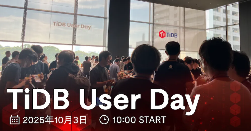2025年10月3日、PingCAP株式会社が国内最大級のNewSQLデータベースイベント「TiDB User Day」を開催します。このイベントは、TiDBのユーザーや分散データベース、クラウドネイティブ技術に興味を持つエンジニアが集まる場となります。今回で4回目の開催を迎えるこのイベントでは、参加者がTiDBの最新情報やベストプラクティスといった実践的なケーススタディをシェアし、より深く学ぶことができる機会となります。