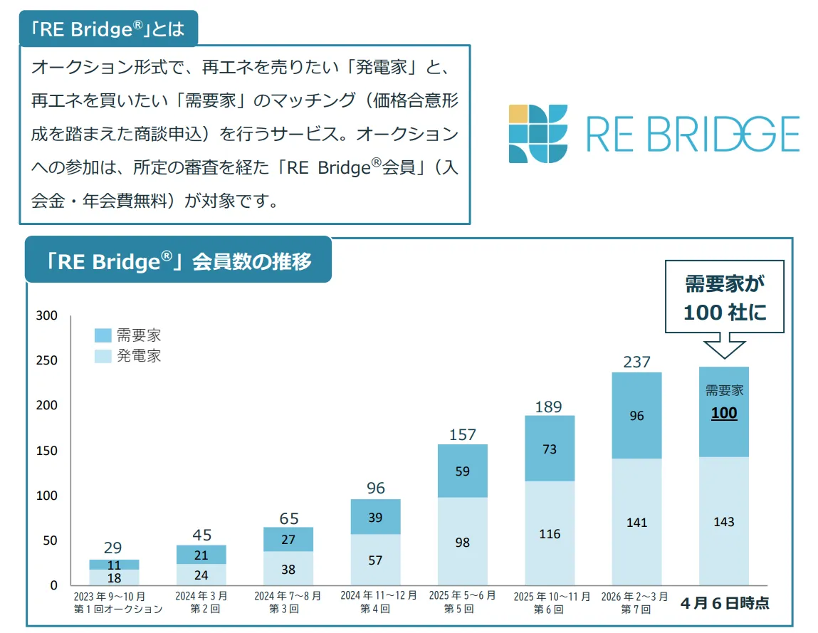 デジタルグリッド株式会社が運営する再生可能エネルギーのマッチングプラットフォーム、「RE Bridge®」の需要家会員数が100社を超えました。これは再エネの普及を目指し、企業が再生可能エネルギーを調達するための重要なステップです。企業が持続可能な電力供給を求める中、RE Bridge®はその鍵となる存在です。