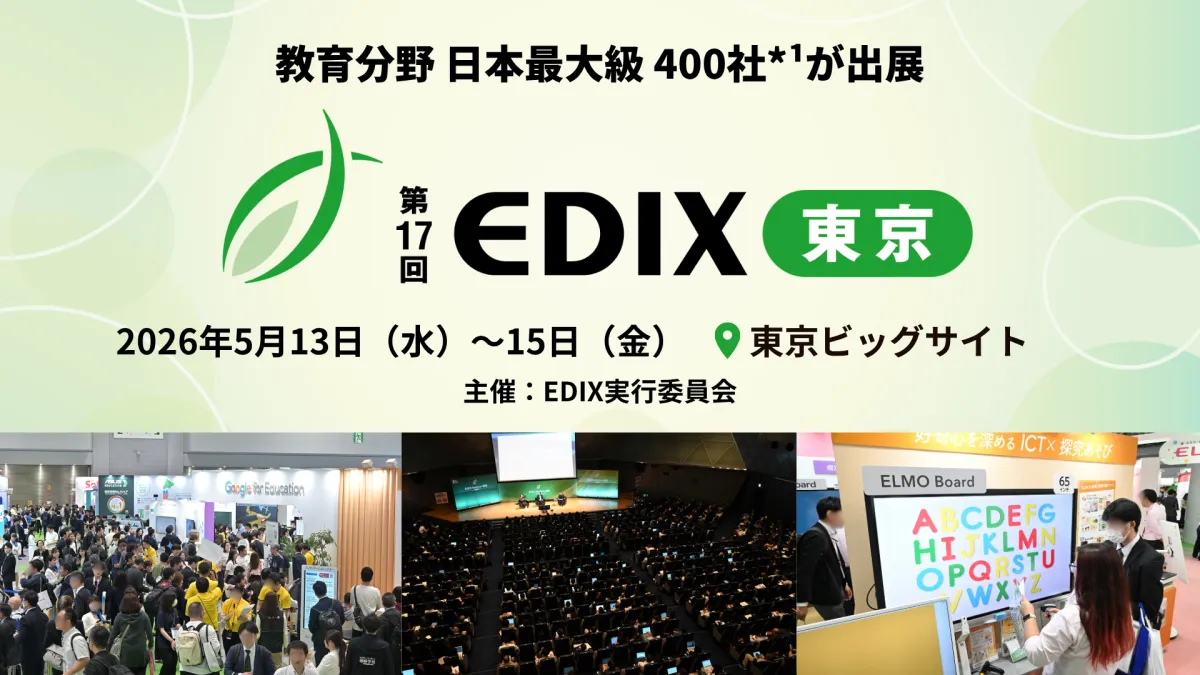 2026年5月13日(水)から15日(金)まで、東京ビッグサイトにおいて「第17回 EDIX(教育総合展)東京」が開催されます。これは日本最大級の教育に関する展示会であり、文部科学省や経済産業省、総務省、そしてデジタル庁などの後援を受けています。約400社が出展し、教育現場が抱えるさまざまな課題に対するソリューションを集めたイベントです。