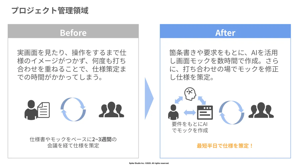 スパイクスタジオの新たなシステム改修プロジェクトでは、プロジェクト管理とエンジニアリングの各領域に生成AIを導入しました。
