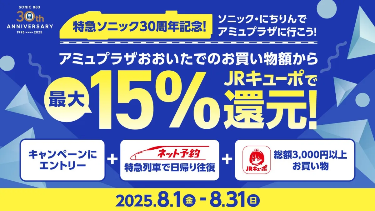 大分県内を巡る旅行をさらに楽しむための絶好のチャンスが到来しました。JR九州は、特急列車を利用してアミュプラザおおいたでのお買い物を促進するキャンペーンを2025年8月1日から8月31日まで実施します。このキャンペーンでは、特急列車を使うことで得られるポイント還元の対象条件が設けられており、訪れる皆さんにとって大変魅力的な機会です。
