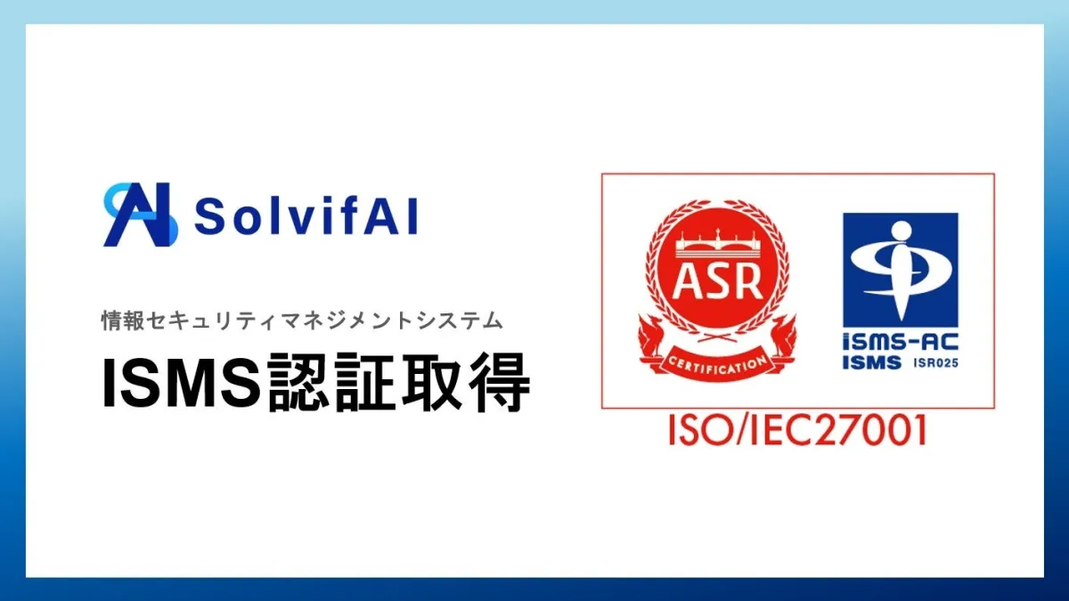 ソルビファイ株式会社が、情報セキュリティマネジメントシステム(ISMS)の認証を取得しました。この認証は、組織が保有する情報資産を安全に管理するための基準であり、ISO/IEC 27001に基づいたものであるため、国際的に認知された信用を得ることができます。