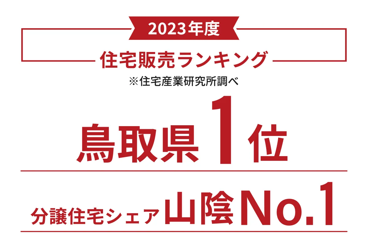 株式会社アート建工(所在地:鳥取県米子市)が、株式会社住宅産業研究所が発表した『2023年度中国(山陰)住宅販売ランキング』において、鳥取県での販売実績が評価され、前年の順位を上げて第1位に輝いたことをお知らせします。これにより、アート建工は、山陰エリアでの分譲住宅シェアでもトップの成果を上げています。