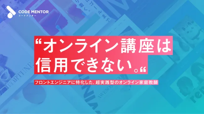 2021年3月15日(月)、フロントエンドエンジニアに特化した新しいオンライン家庭教師サービス"コードメンター"がスタートしました。このプログラムは、フリーランスを目指す人や転職を希望する方々に向けて設計されており、少人数制のオンラインレッスンで、現役のプロに直接学ぶことができます。