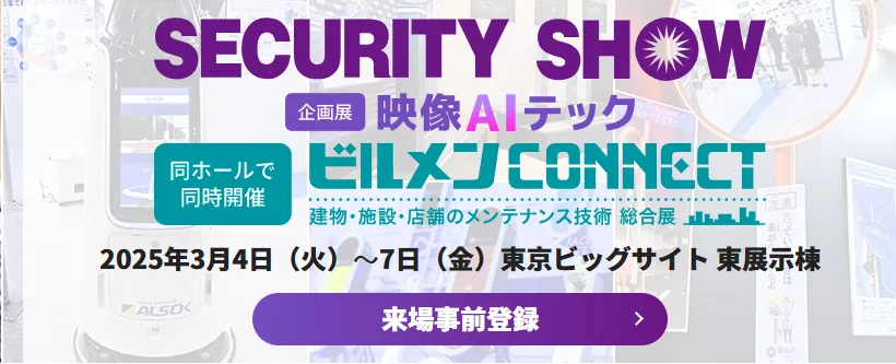 「SECURITY SHOW 2025」は、防犯、監視、安全対策の最新技術が集まるイベントで、企業や自治体、商業施設、工場などに向けた様々なセキュリティ製品やソリューションが紹介されます。防犯カメラや入退室管理システムの他、サイバーセキュリティ対策、AIやIoTを駆使した新たなセキュリティ技術に至るまで、多岐にわたる展示内容が予定されています。