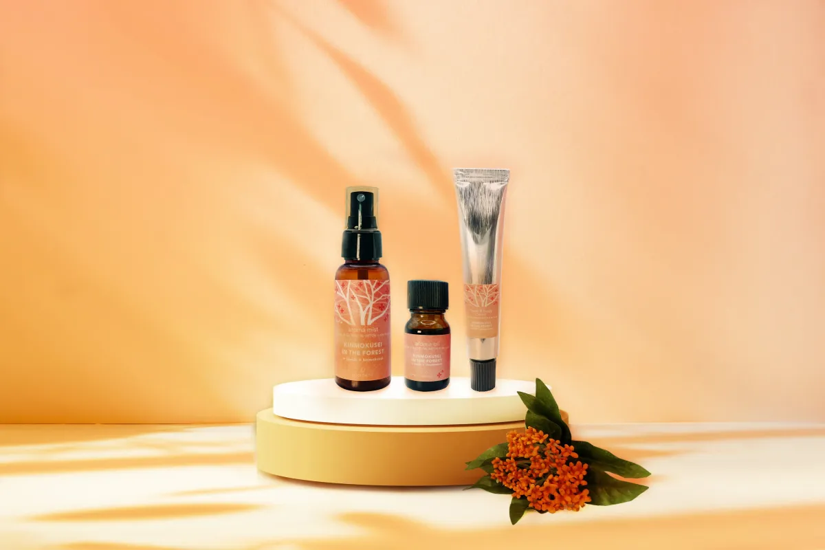 『金木犀 イン ザ フォレストシリーズ』では、アロマミスト、アロマオイル、ハンド&ボディクリームの三種類が登場。いずれも、金木犀の香りを基にした、他にはない特別なアイテムです。