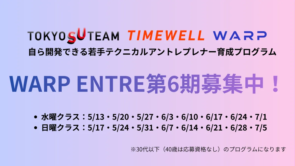 今後のスタートアップに必要なエンジニア力の強化や事業開発のスピードを確保するために、WARPは極めて有意義なプログラムです。興味がある方は、以下のリンクからぜひお申し込みください。