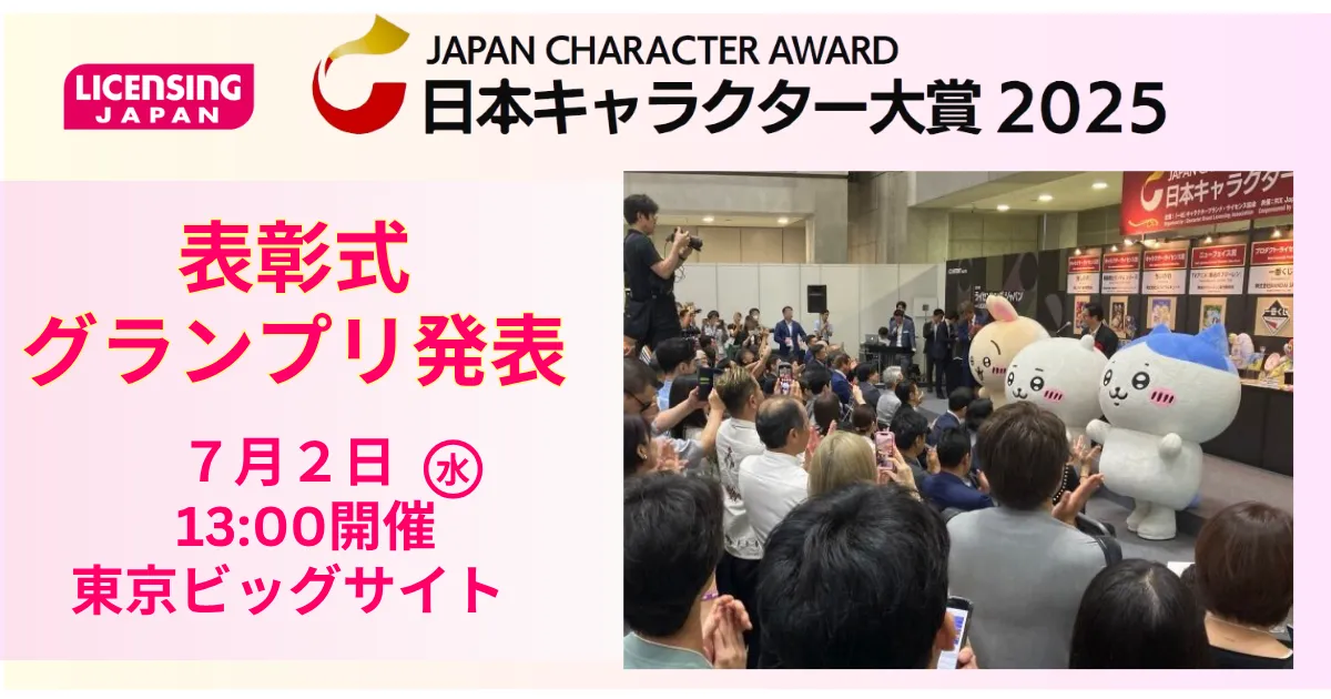 2025年の日本キャラクター大賞が、キャラクターやライセンスビジネスの業界において、その年のトッププロパティを選定する重要なイベントとして開催されています。今年で16回目を迎えるこのアワードは、ライセンス事業の活性化やキャラクターの魅力を広めるために、さまざまなプロパティの互いの競争を促進しています。表彰式は、2025年7月2日(水)に東京ビッグサイトで行われる予定です。