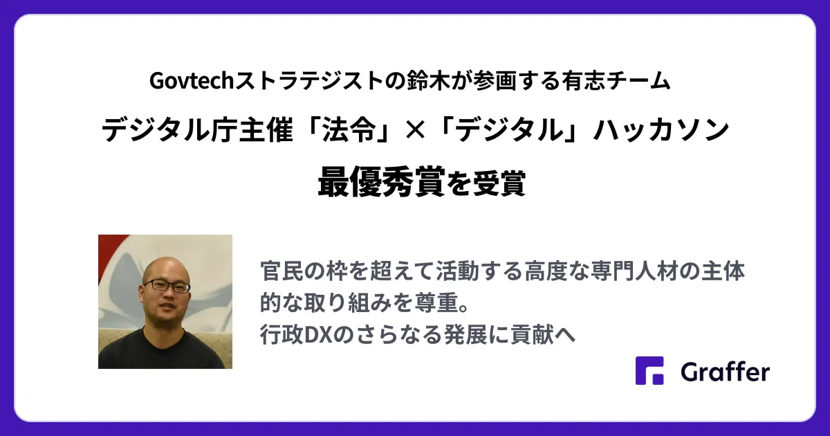 2026年3月10日、東京都渋谷区の株式会社グラファーのGovtechストラテジスト、鈴木宏和が参加する有志チームが、デジタル庁が主催する「法令」×「デジタル」ハッカソンで最優秀賞を獲得しました。このハッカソンは、官民が協力してデジタル社会を促進するための重要なイベントです。