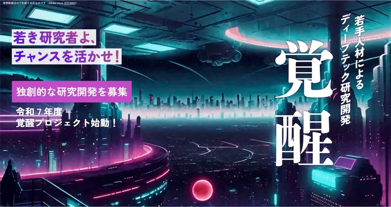 2025年度に向けた若手研究人材育成プロジェクト、通称「覚醒プロジェクト」が始まります。本プロジェクトは、産業技術総合研究所が実施するディープテック分野の研究開発を促進するための取り組みで、特に独創的な発想を持つ若手人材を対象にしています。このプロジェクトでは、AI、生命工学、材料・化学、量子に関連した新しい技術や研究テーマを募集します。