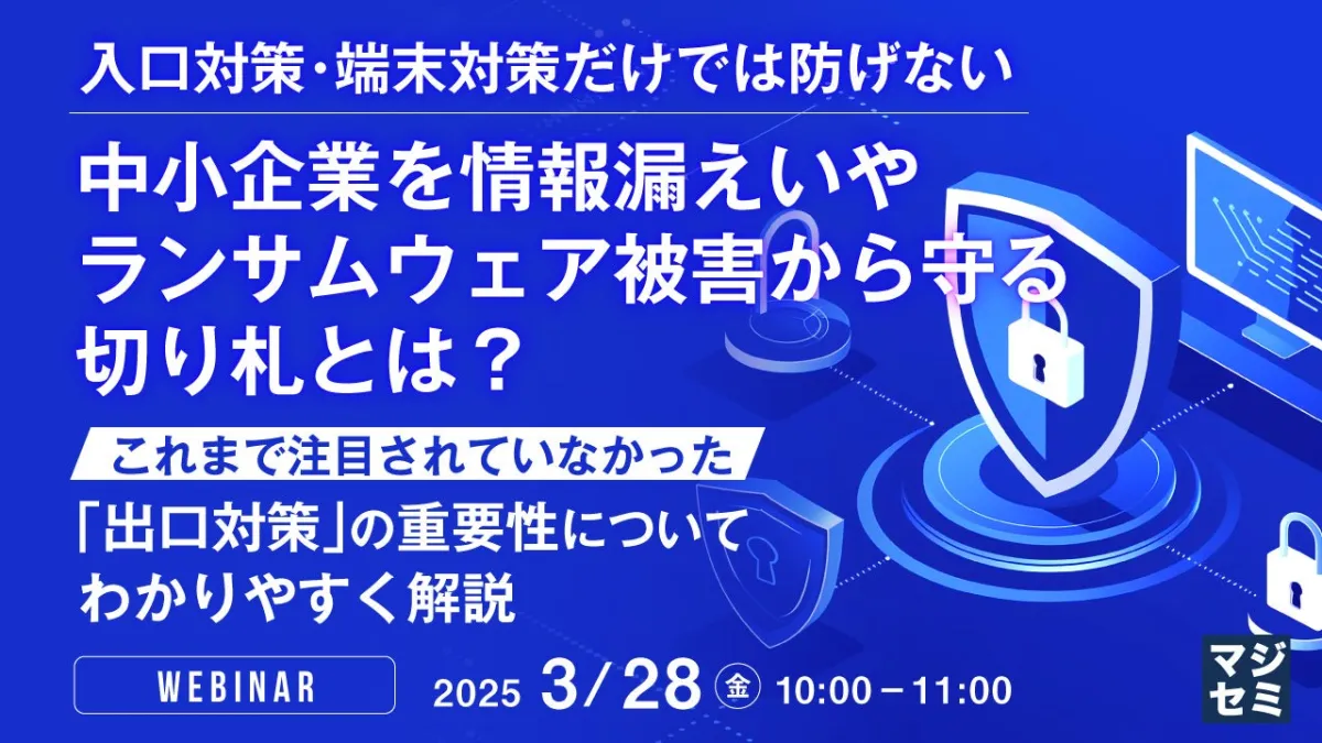 企業のセキュリティ対策がこれまで以上に重要視される時代に突入しています。特に、中小企業においてはリモートワークの普及に伴い、サイバー攻撃のリスクが急速に高まっています。このたび、そんな企業を対象にしたウェビナーが開催されることが決まりました。テーマは『入口対策・端末対策だけでは防げない、中小企業を情報漏えいやランサムウェア被害から守る切り札とは?』です。