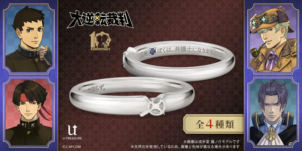大逆転裁判シリーズが、2025年7月9日に10周年を迎えるのを記念して、特別なメッセージリングが発表されました。この記念モデルは、株式会社ユートレジャーと共に製作されたもので、オンラインショップおよび特定の店舗での予約受け付けが、2026年2月12日から3月17日まで行われます。