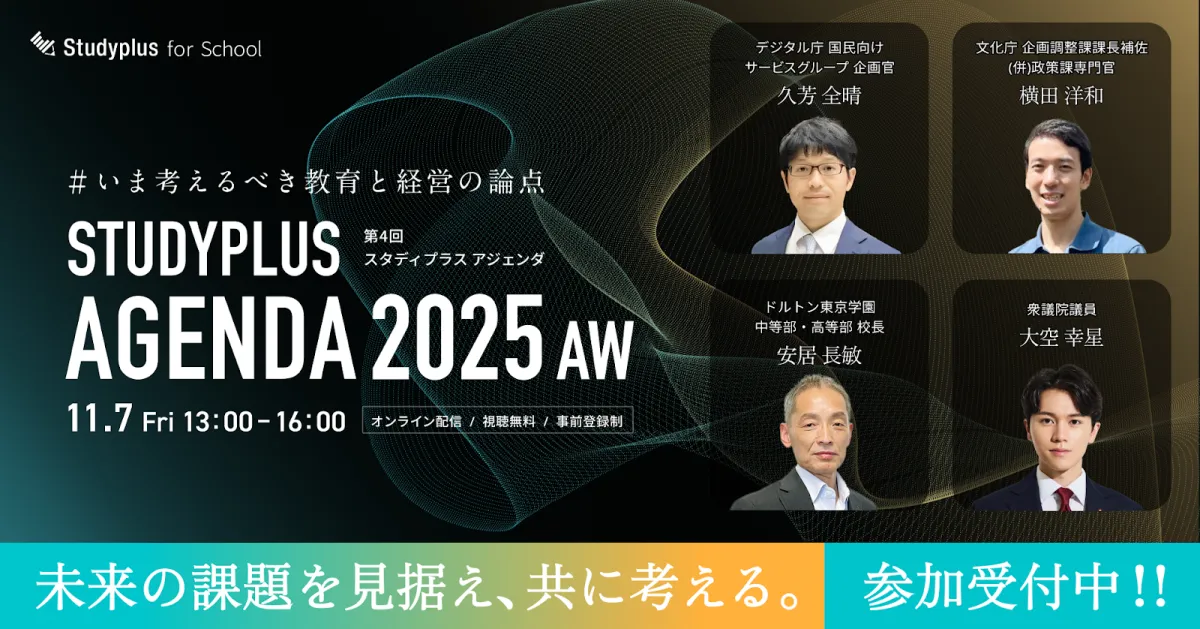 - - イベント名:Studyplus Agenda 2025 AW〜いま考えるべき教育と経営の論点〜