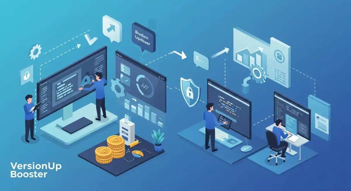 VersionUp boosterは、PHPやRubyで開発されたプロジェクトのバージョンアップを代行するサービスです。1回のアップデートに対して最安40万円から提供されており、最新技術への移行をスムーズに行います。バージョンアップを怠ることで脆弱性や開発生産性の低下が懸念されることから、企業は積極的にこれを考慮する必要があります。