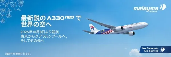マレーシア航空が2025年10月8日から成田(NRT)–クアラルンプール(KUL)間のフライトに最新のA330neoを投入することを発表しました。この最新鋭の機材により、より快適で質の高い空の旅が実現されます。マレーシア航空は、マレーシアならではのホスピタリティと先進技術を融合させたサービスを提供し、乗客の期待を超える体験をお届けすることを目指しています。