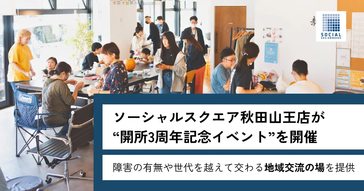 2026年4月4日(土)、秋田市に位置するSOCIALSQUARE秋田山王店が開所3周年を祝う「ごちゃまぜ春フェス Vol.3」を開催します。このイベントは、障害の有無や年齢、国籍を超えた地域交流を目的にしており、誰でも参加できる自由な雰囲気の中で地域の住民と触れ合う機会です。