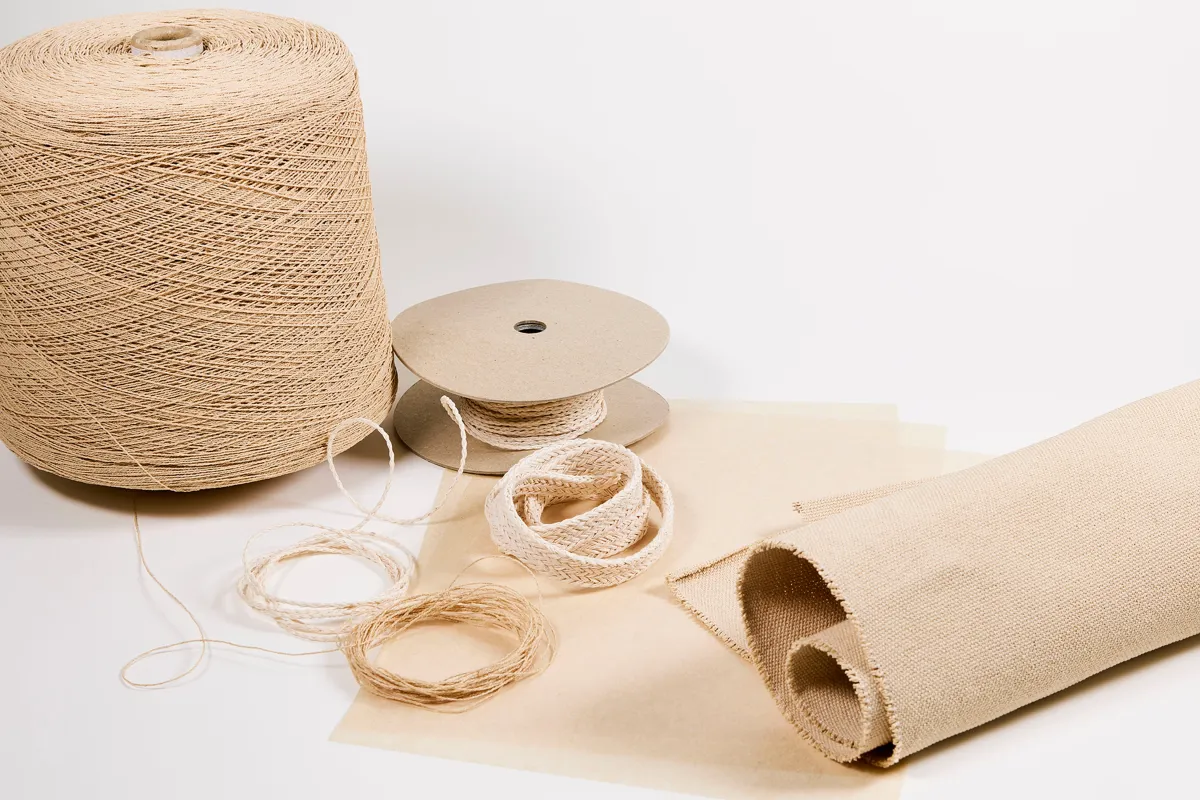 Cafetex®は、コーヒーフィルターの端材を再生パルプ化して製造した薄葉紙を基にした素材です。この薄葉紙に対してマイクロスリット加工や撚糸加工を施すことで、従来とは異なる新しい紙糸としての利用が可能となっています。これにより、アパレル産業や産業資材、さらにはインテリアデザインなど多岐にわたる分野での活用が期待されているのです。