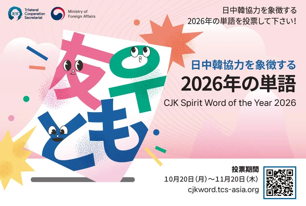 2025年10月20日、日中韓三国協力事務局(TCS)は韓国外交部と共催で「日中韓協力を象徴する2026年の単語」オンライン投票キャンペーンを開始しました。この取り組みは、三国の文化的親近感と市民の相互理解を深める目的で行われています。投票は2025年10月20日から11月20日まで行われ、参加者は候補となる6つの言葉から一つを選んで投票することができます。