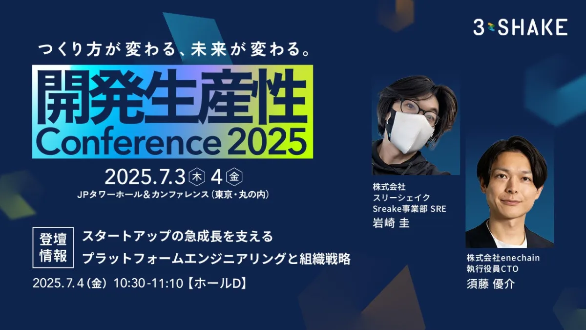 株式会社スリーシェイクは、2025年7月3日(木)と4日(金)に東京のJPタワーホール&カンファレンスで開催される「開発生産性Conference 2025」にGoldスポンサーとして協賛し、ブース出展およびセッション登壇を行うことを発表しました。