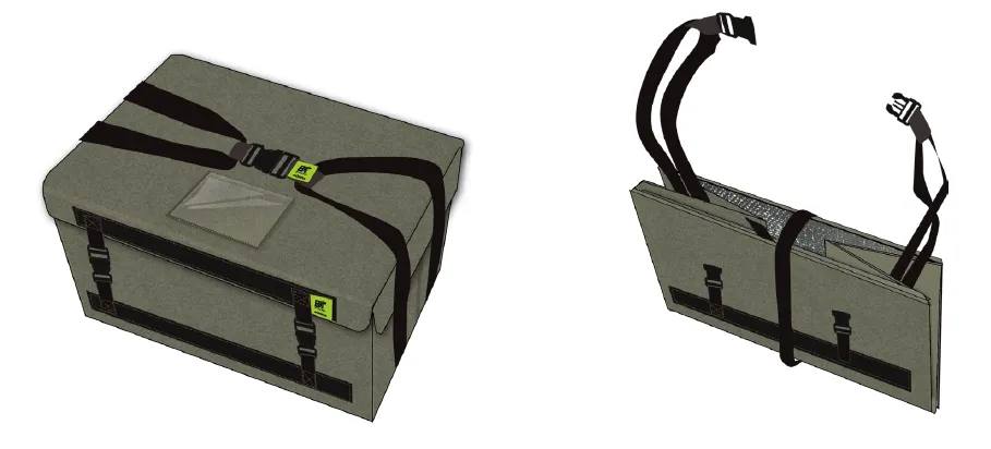 「BT-PACKER™」のもう一つの魅力は、簡単に折り畳むことができる点です。使用しない時はコンパクトに保管でき、必要な時にはいつでも使えます。また、公共交通機関や施設内での緊急時の使用にも対応できます。