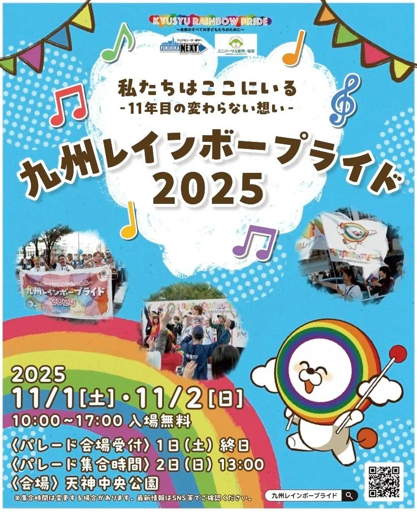 福岡市の天神中央公園で、2025年11月1日(土)と2日(日)に「九州レインボープライド2025」が開催されることが発表されました。イベントのテーマは「私たちはここにいる!」で、LGBTQ+コミュニティの当事者が自分らしく生きられる社会の実現を目指します。