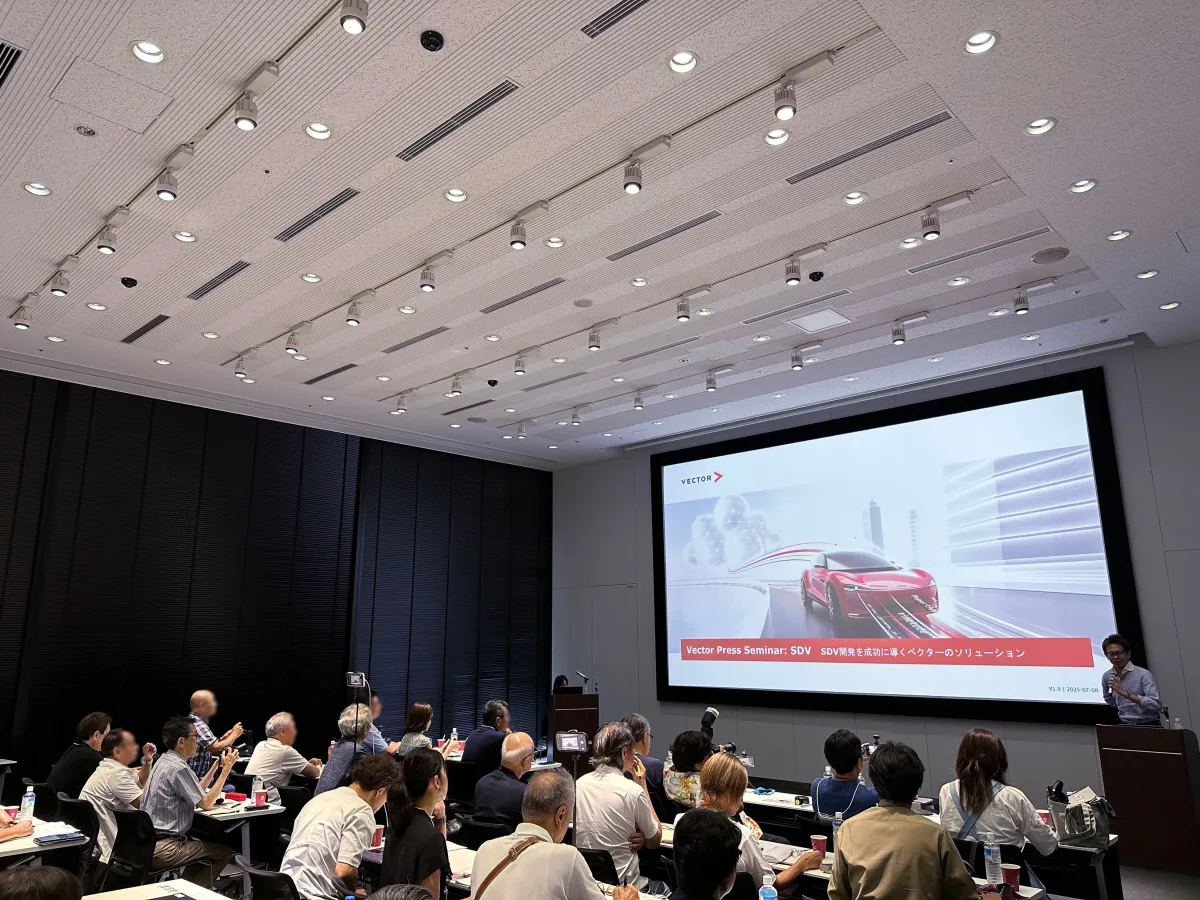 2025年7月8日、東京・品川にある「シーズンテラスカンファレンス」にて、ベクター・ジャパン株式会社が「Vector Press Seminar: SDV」を行いました。このセミナーでは、Software-Defined Vehicle(SDV/ソフトウェア・デファインド・ビークル)の開発におけるリアルな課題や背景が取り上げられ、業界のメディア関係者に向けて具体的なソリューションが紹介されました。