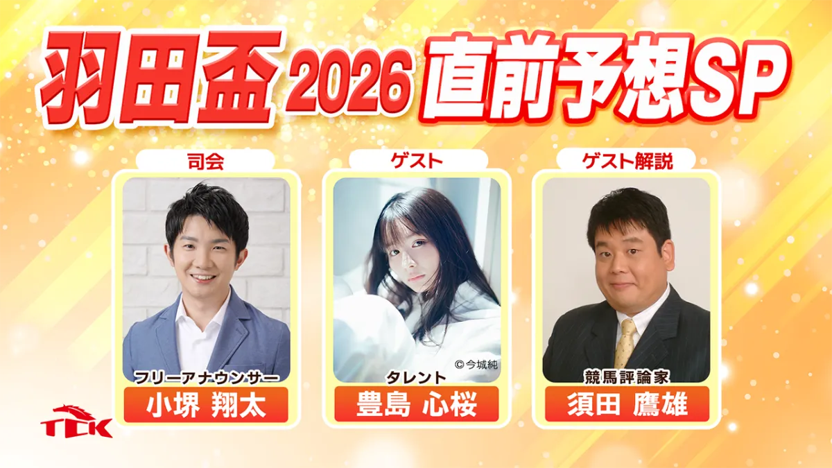 東京シティ競馬(TCK)が主催する「羽田盃2026直前予想SP」が、いよいよ放送されることが決まりました。この特別番組では、3歳ダート三冠の初戦である羽田盃(JpnⅠ)を前に、豊島心桜さんや須田鷹雄さんをゲストに迎え、競馬ファンにとって欠かせない解析が行われます。