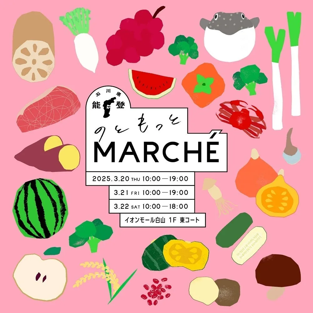 2024年3月20日(木・祝)から22日(土)までの3日間、イオンモール白山で「のともっとMARCHE」という復興フェアが開催されます。このイベントは、昨年の能登半島地震や奥能登豪雨で被災した地域の生産者を支援することを目的としています。