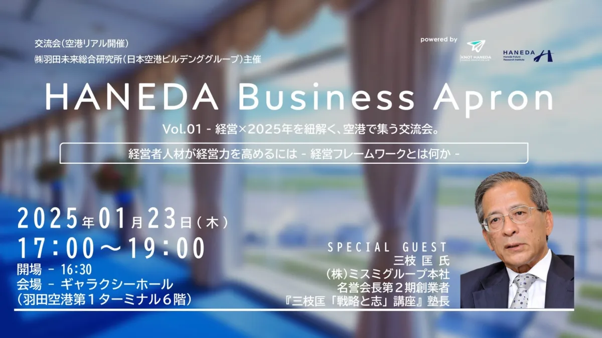 イベントは2025年1月23日(木)17時から19時まで、羽田空港第1ターミナルの6階にあるギャラクシーホールで開催されます。16:30から受付が開始され、参加者は名刺を持参する必要があります。