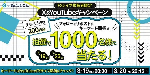 東京都港区に本社を置く株式会社外為どっとコムは、2025年3月19日(水)より、「FXライブ視聴者限定」と名づけた特別キャンペーンを開始します。このキャンペーンは、特定の条件を満たす視聴者に向けて、抽選で1,000名に200円分のデジタルギフト「えらべるPay®︎」がプレゼントされるというものです。