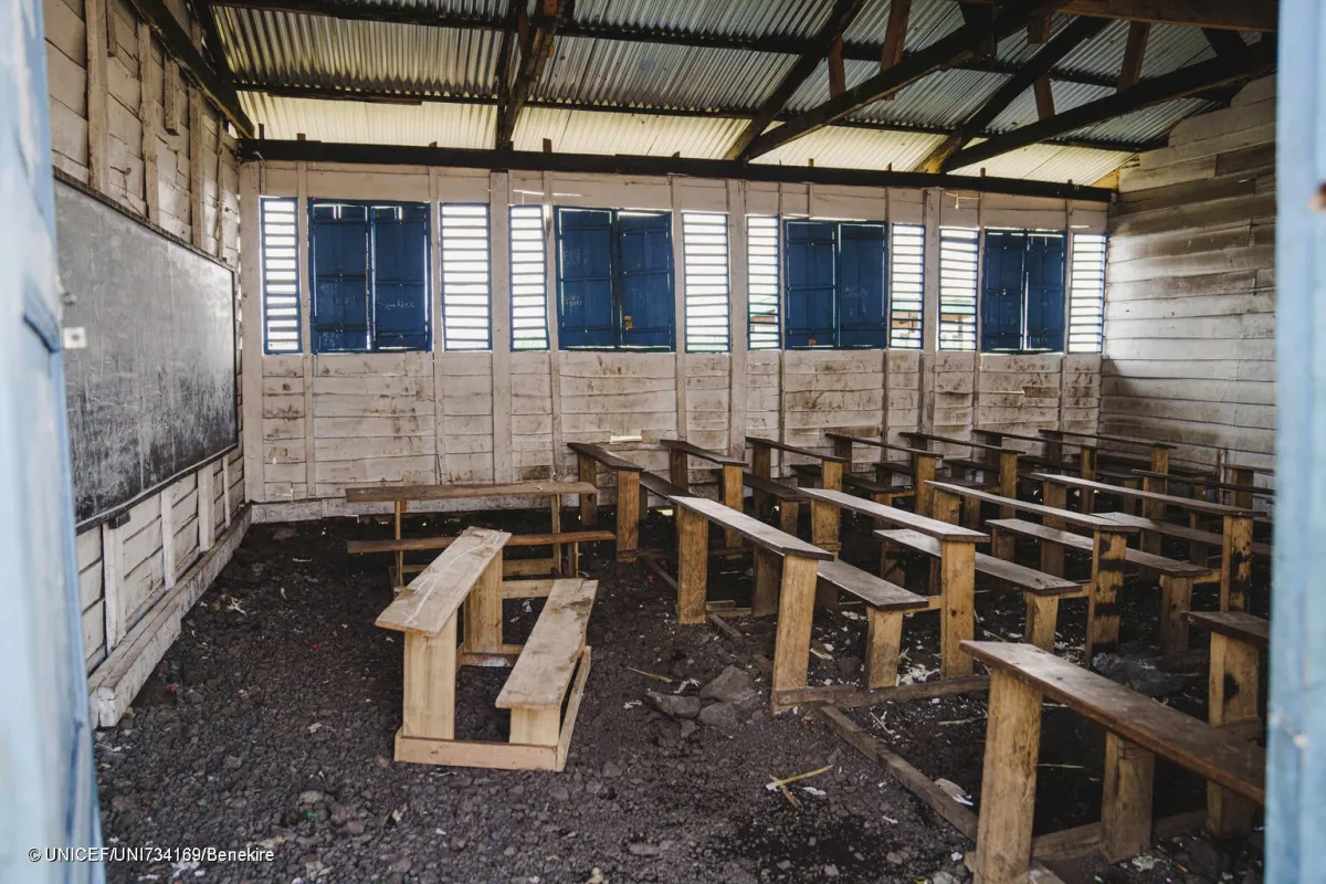 2025年初頭、北キブ州および南キブ州では、学校が閉鎖されるか、物理的に損害を受けるか、避難所として使用されているため、コンゴ民主共和国東部で教育機関の2300以上が使用できなくなりました。これにより、79万5000人の子どもたちが学びの場を失っています。この数字は、2024年12月時点で46万5000人だったことから、急激に悪化していることを示しています。