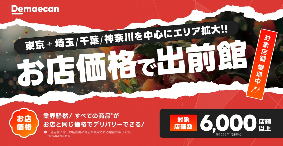 株式会社出前館は、2026年2月1日から1都3県(東京、埼玉、千葉、神奈川)にて、6,000店舗以上を対象としたデリバリーサービス「お店価格で出前館」を開始すると発表しました。この新サービスでは、ユーザーは店頭と同じ価格で商品を注文し、手軽にデリバリーを楽しむことができるようになります。