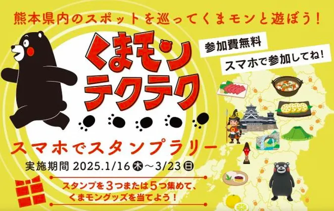 くまモンテクテクは、熊本県内の各スポットを巡りながらスタンプを集めるイベントです。熊本市内の観光名所を巡り、スタンプを集めることで様々な特典を獲得できます。特に、スタンプを集めて応募できるくまモングッズは人気が高く、旅行者の参加を促進しています。