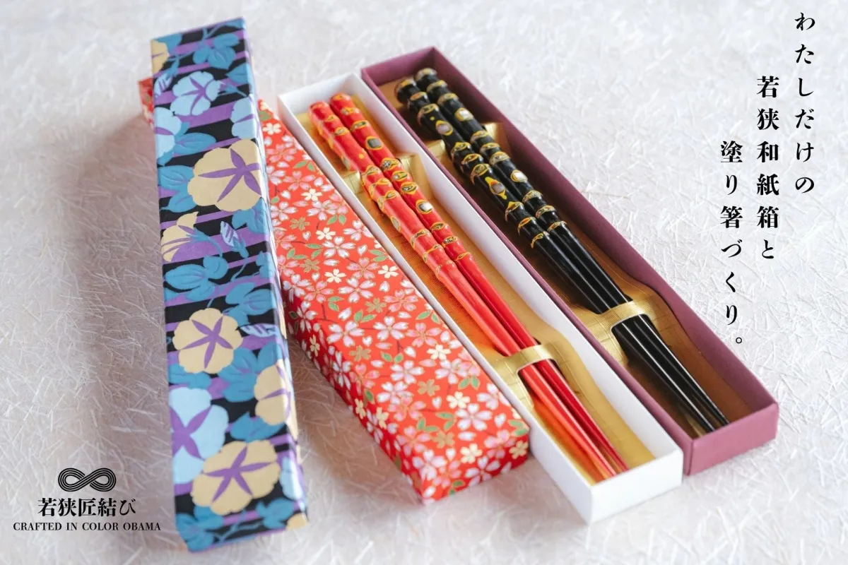 完成: 箸と和紙箱が一つの作品として完成し、自分の手で作った作品を持ち帰ることができます。