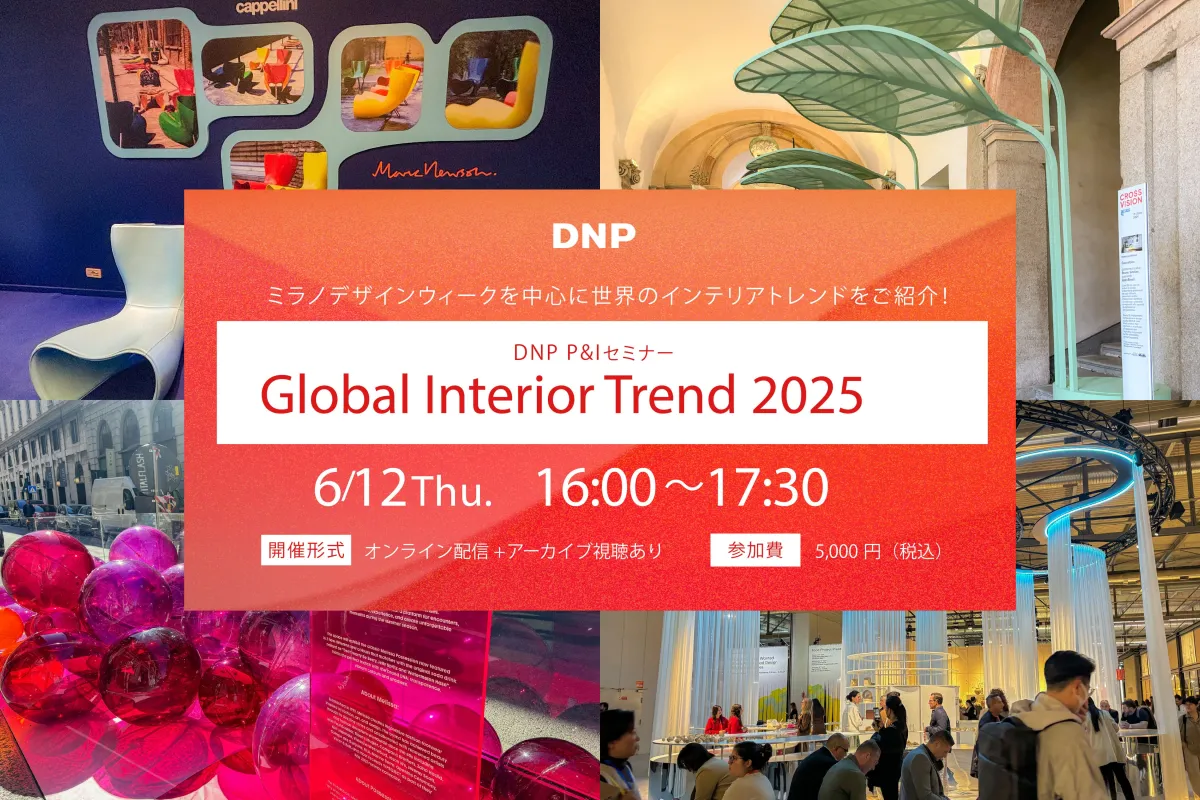 大日本印刷株式会社(DNP)は、2025年6月12日(木)、イタリアのミラノを舞台にした最新のグローバルインテリアトレンドを発信するオンラインセミナーを開催します。この「DNP P&Iセミナー Global Interior Trend 2025」は、ミラノデザインウィークに関連する情報だけでなく、様々なインテリアブランドに関する調査成果をもとに、独自の視点でライフスタイルやインテリアにおけるトレンドを分析・紹介するものです。