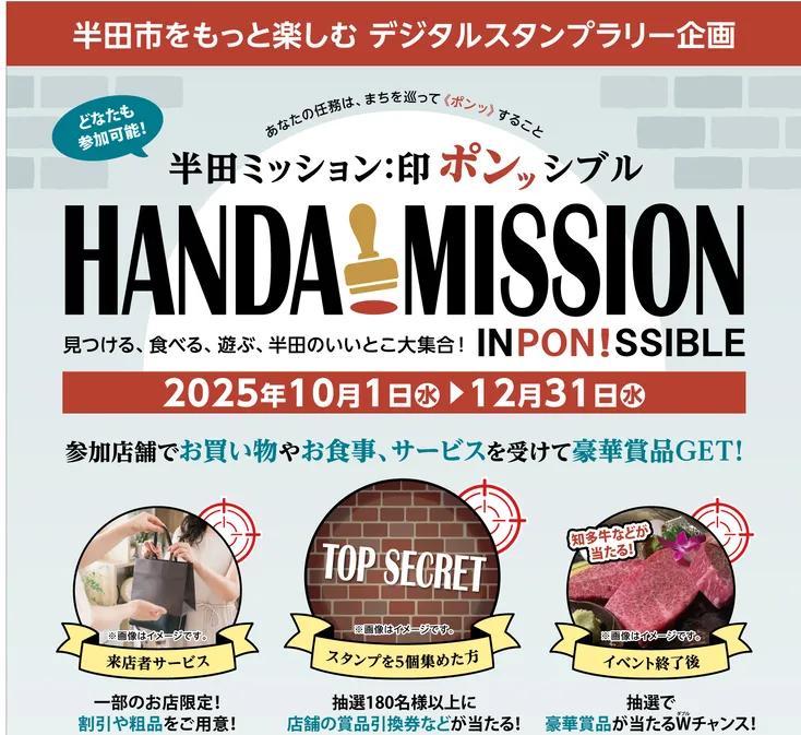 『半田ミッション:印ポンッシブル』の詳細や参加店舗情報は、公式サイトで確認できます。ぜひこの機会を逃さず、半田市の魅力を存分に楽しんでください。
