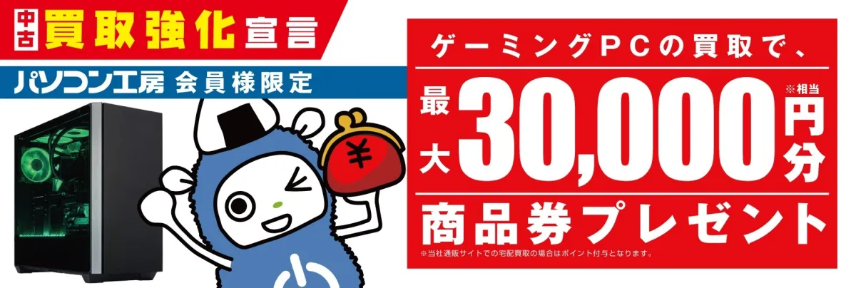 パソコン工房を運営する株式会社ユニットコムは、全国の店舗及び宅配買取で、ゲーミングPCの買取強化キャンペーンを発表しました。このキャンペーンでは、パソコン工房の会員様限定で、指定されたゲーミングPCを買取した際に、最大3万円分の商品券やポイントをプレゼントするというお得な内容です。キャンペーンの開始日は2026年の2月11日(水・祝)です。
