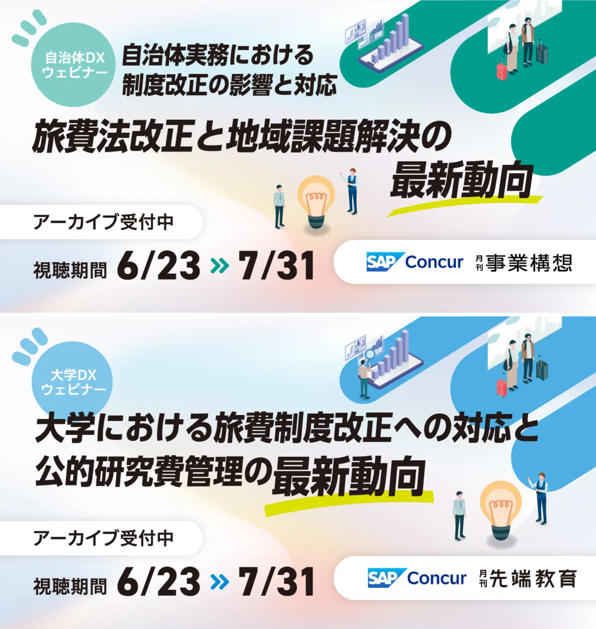 2025年に施行される改正旅費法により、自治体や高等教育機関は新たな業務フローを構築し、DX(デジタルトランスフォーメーション)の推進がにわかに重要性を増しています。この変革の時期に合わせて、各団体が直面する課題に対する解決策を提供する2つのセミナーが開催されます。