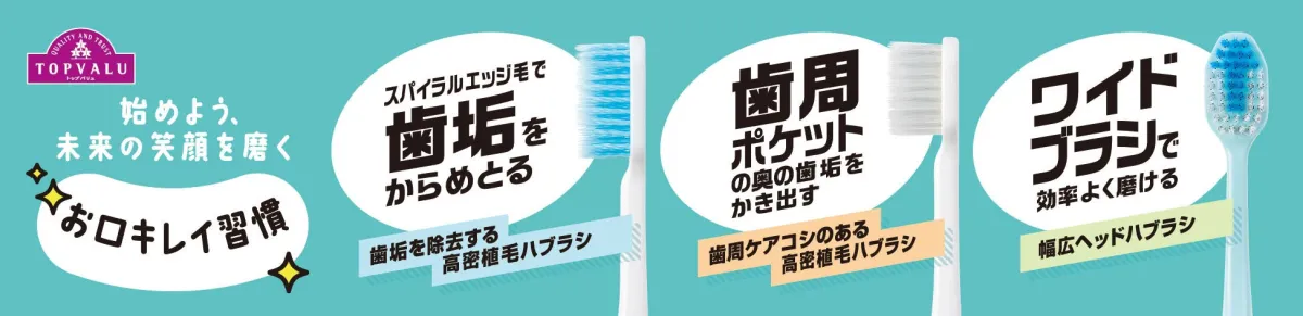 詳細は、発売日にリニューアルされるイオントップバリュのホームページや店頭ポップをご確認ください。健康と美しさを保つために、イオンの新ハブラシをぜひお試しください。