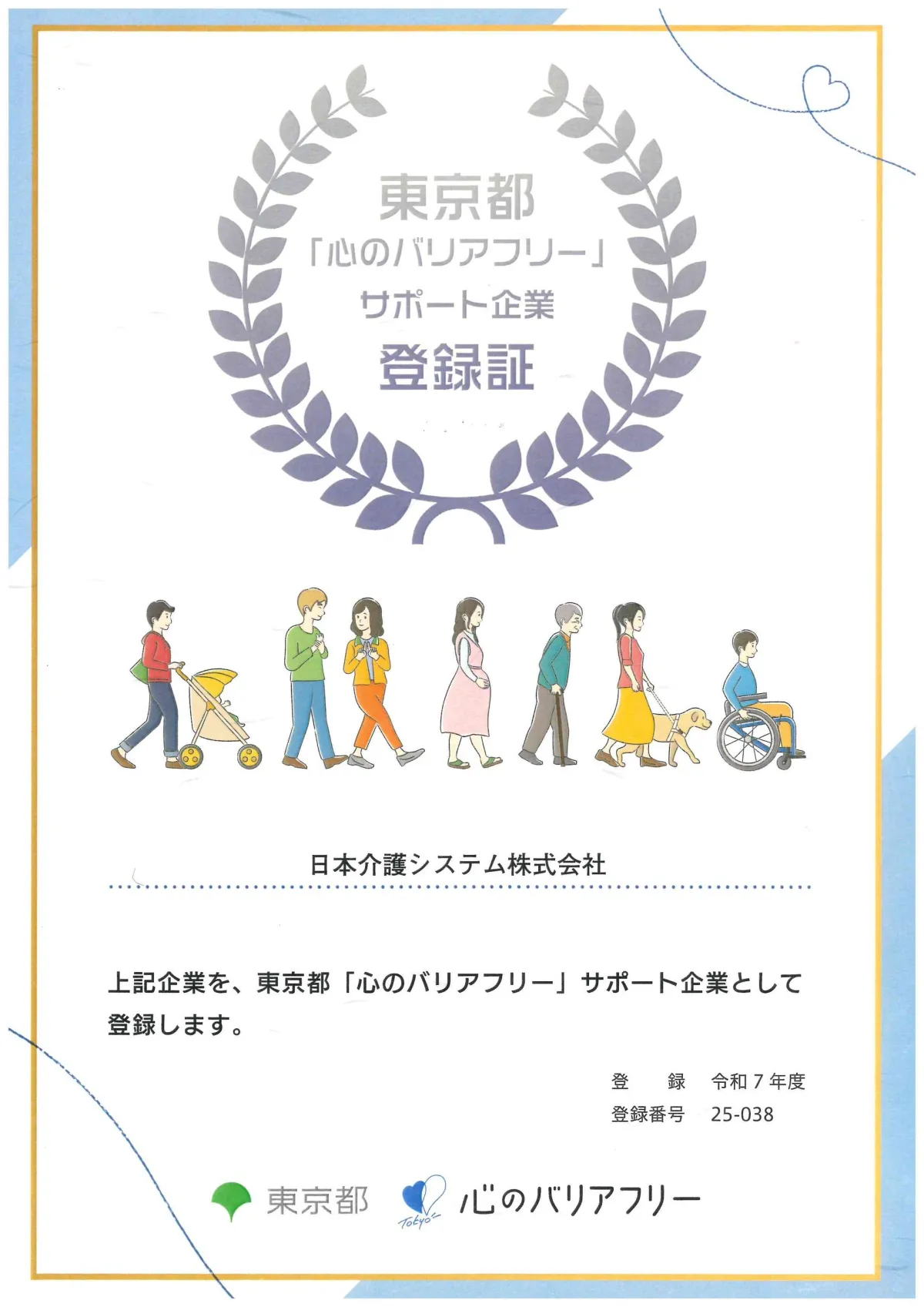 日本介護システム、心のバリアフリー企業に登録