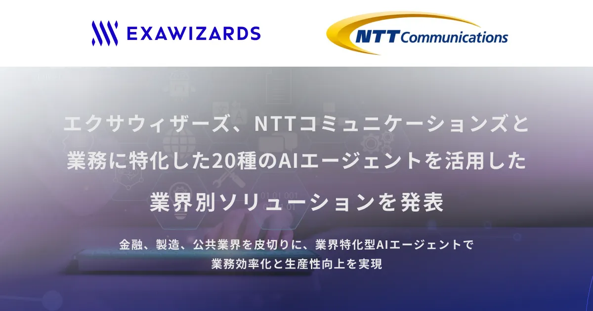2025年6月19日、株式会社エクサウィザーズ(以下、エクサウィザーズ)とNTTコミュニケーションズ(以下、NTT Com)は、業務に特化した20種類のAIエージェントを活用し、新たな業界別ソリューションを発表しました。この発表は、両社が2025年5月28日に締結した資本業務提携の一環であり、業務の理解を深めたAIエージェントを導入することで企業の生産性向上や競争力強化に寄与することを目的としています。