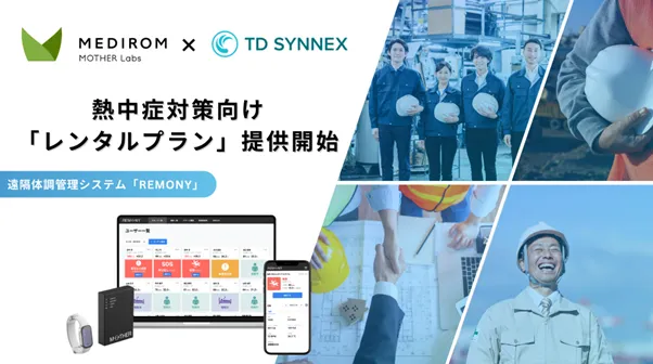 TD SYNNEXと株式会社MEDIROM MOTHER Labs(通称マザーラボ)が連携し、熱中症対策向けの遠隔体調管理システム「REMONY(リモニー)」を提供する新プランが2026年4月より登場します。このプランは、特に暑熱リスクが高まる夏季に向けたもので、必要な数だけのデバイスを手軽に導入できることが特徴です。