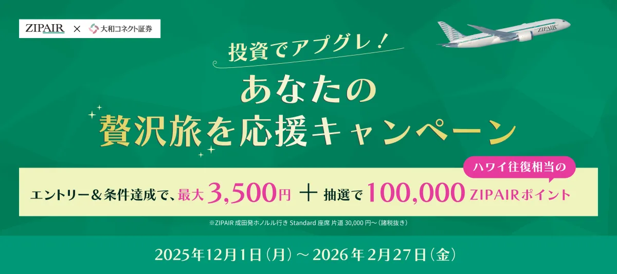 大和コネクト証券とZIPAIRによる特別キャンペーン