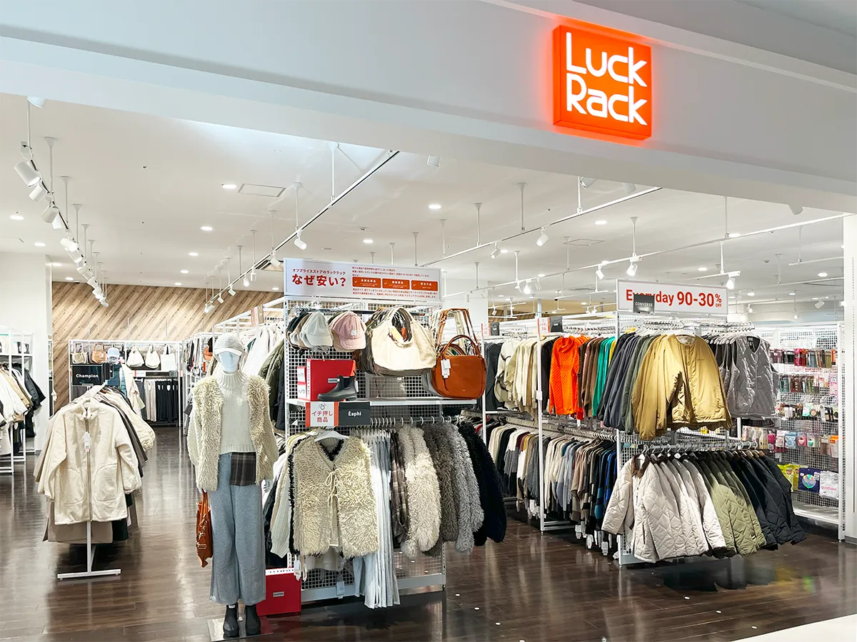 『ラックラック』は、メーカーや小売店から仕入れた余剰商品を、通常の販売価格よりも大幅にディスカウントして提供する小売業態です。福岡県の筑紫野市にあるイオンモール筑紫野店、及び大牟田市のイオンモール大牟田店の両店舗では、レディースやメンズの衣料品を始め、バッグや靴、アクセサリーなど約10,000点の商品を取り扱う予定です。約100のブランドを取り揃え、様々な好みに応じた商品を豊富に展開します。