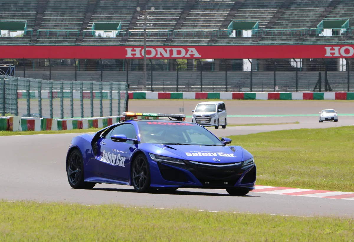 大型バスに乗ってレーシングコースを一周するこのプログラムでは、コースの高低差や特徴を直接体験することができます。