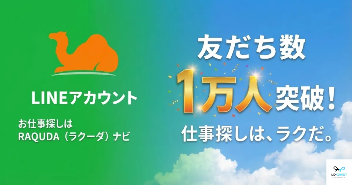 LINE公式アカウント「お仕事探しはRAQUDA(ラクーダ)ナビ」の友だち数が1万人を突破