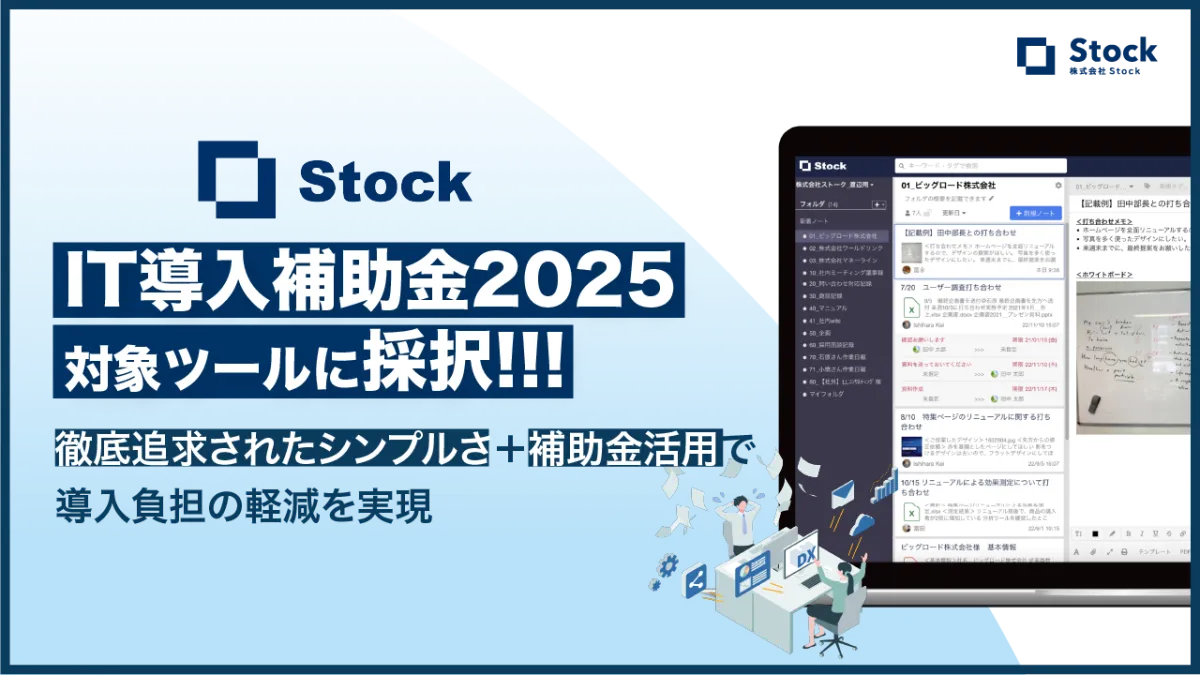 情報の共有や管理は、特に非IT企業にとって大きな課題です。そんな中、株式会社Stockが開発した情報共有ツール『Stock』が、経済産業省が進める「IT導入補助金2025」の通常枠に採択されました。この選定により、多くの中小企業や小規模事業者が抱える情報共有のストレスを軽減し、効率的なビジネス運営を支援する体制が整いました。
